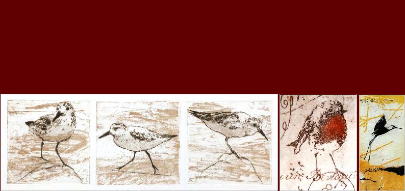 Jag tröttnar aldrig på detta havslandskap med stränder som sträcker sig oändligt långt vid lågvatten, hägrarnas häckningsplatser med sina sammanslingrade grenverk, rester av alger och avlagringar i tidvattenzonen… De grafiska tekniker jag använder är hu- vudsakligen torrnål och akvatintetsning.