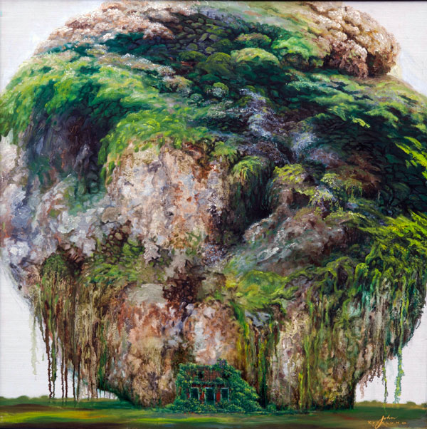 Jag jobbar oftast med olja på duk, akvarell, tusch och pappersmassa men ibland också med stenar, glas, fjädrar, trä och rostiga saker.
