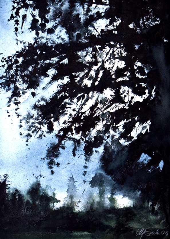 Ekerviks akvareller är hållna i en ljus färgskala, med få färger. Ljuset