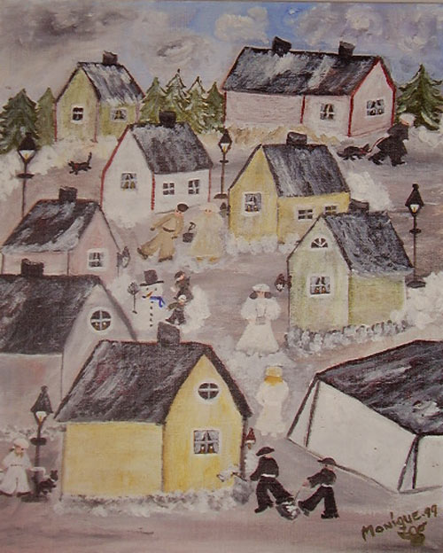 Monique är uppvuxen i en konstnärlig familj där färg, form och fantasi hade stor betydelse. Hon är en naivistmålare och tanken med hennes tavlor är att dom skall skänka mycket glädje.